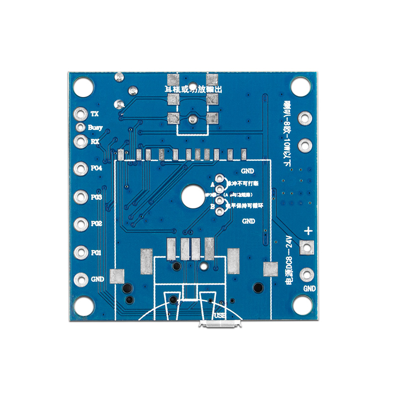 YX6300多路串口MP3功放模塊,采用了YX6300做主控,良好的集成了MP3、WAV 的硬解碼。