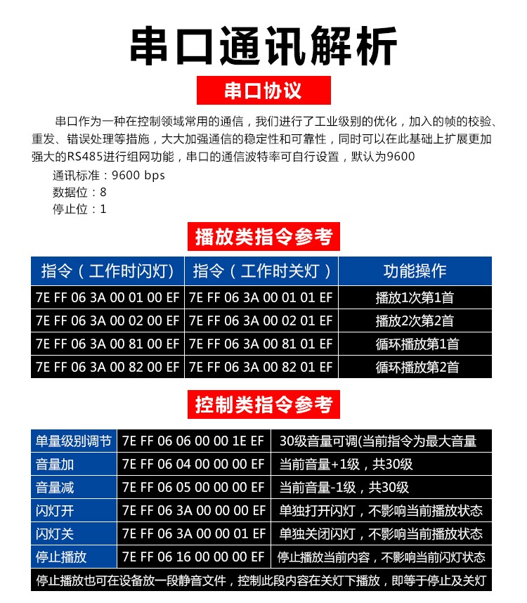 1、聲光同步報(bào)警(串口可單獨(dú)控制聲或光)。