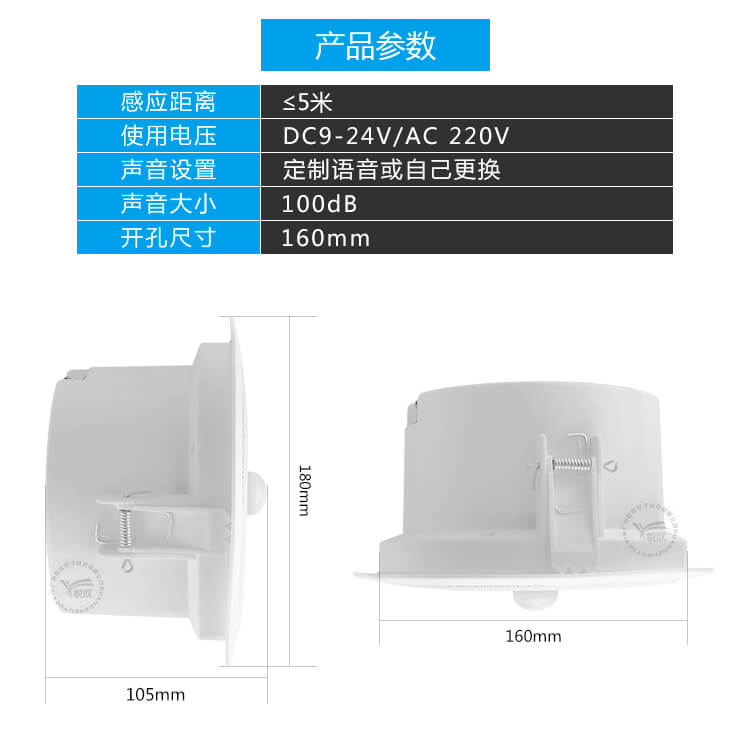 YX160人體感應(yīng)語(yǔ)音提示器,采用吸頂式安裝,美觀大方。當(dāng)有人經(jīng)過時(shí),此喇叭會(huì)自動(dòng)觸發(fā)播報(bào),播報(bào)過程中再次有人經(jīng)過也不會(huì)被打斷,不會(huì)亂報(bào)。