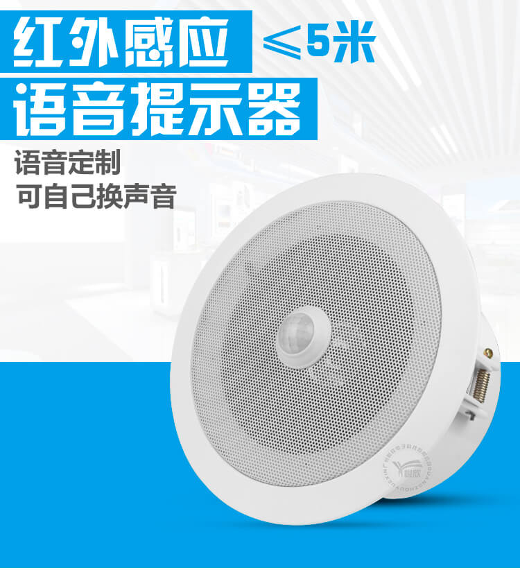 YX160人體感應(yīng)語(yǔ)音提示器,采用吸頂式安裝,美觀大方。適用于商業(yè)廣告、公共廁所提示、銀行提示等。當(dāng)有人經(jīng)過時(shí),此喇叭會(huì)自動(dòng)觸發(fā)播報(bào),播報(bào)過程中再次有人經(jīng)過也不會(huì)被打斷,不會(huì)亂報(bào)。