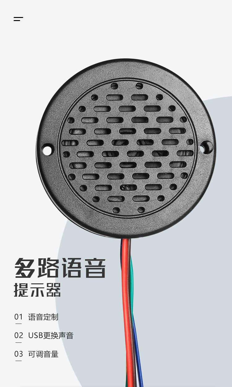 語(yǔ)音提示提示喇叭以它特有的時(shí)尚美感而存在,采用的新潮的扁平化設(shè)計(jì),在這里推薦大家用在一些裝飾風(fēng)格要求高的地方,比如汽車啟動(dòng)語(yǔ)音,汽車故障提示音等,又或者是升降電梯,觀光電梯緊急提示,與周邊環(huán)境相對(duì)應(yīng)的場(chǎng)所使用,它能給人一種簡(jiǎn)約大方的時(shí)尚美感。